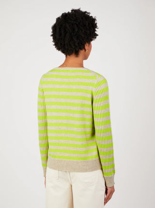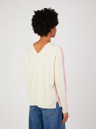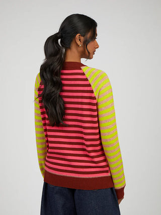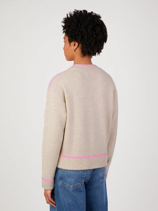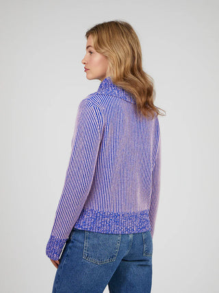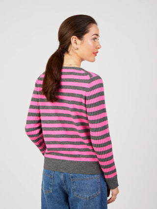 Carey Storm Grey Stripe Wool Cashmere Cardigan