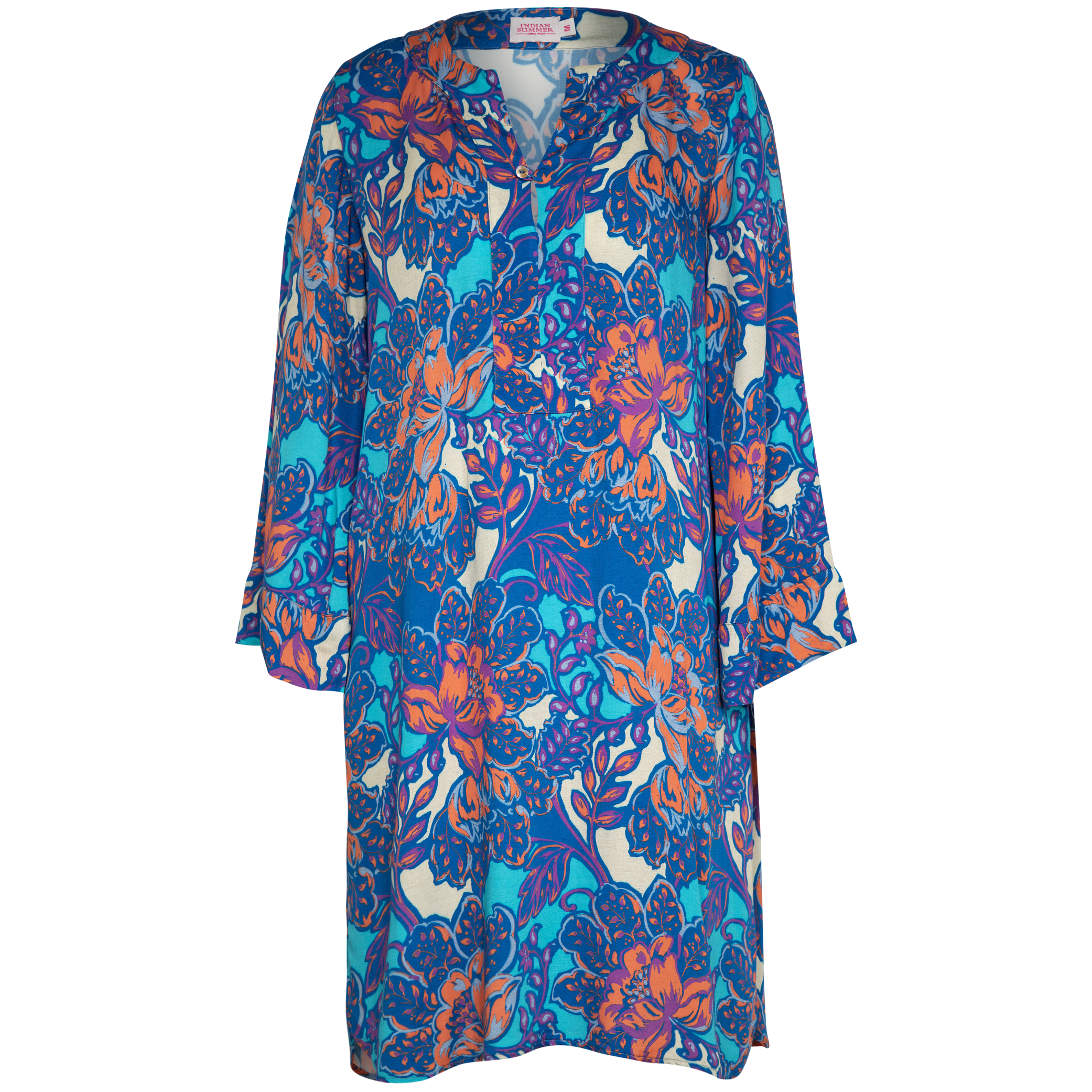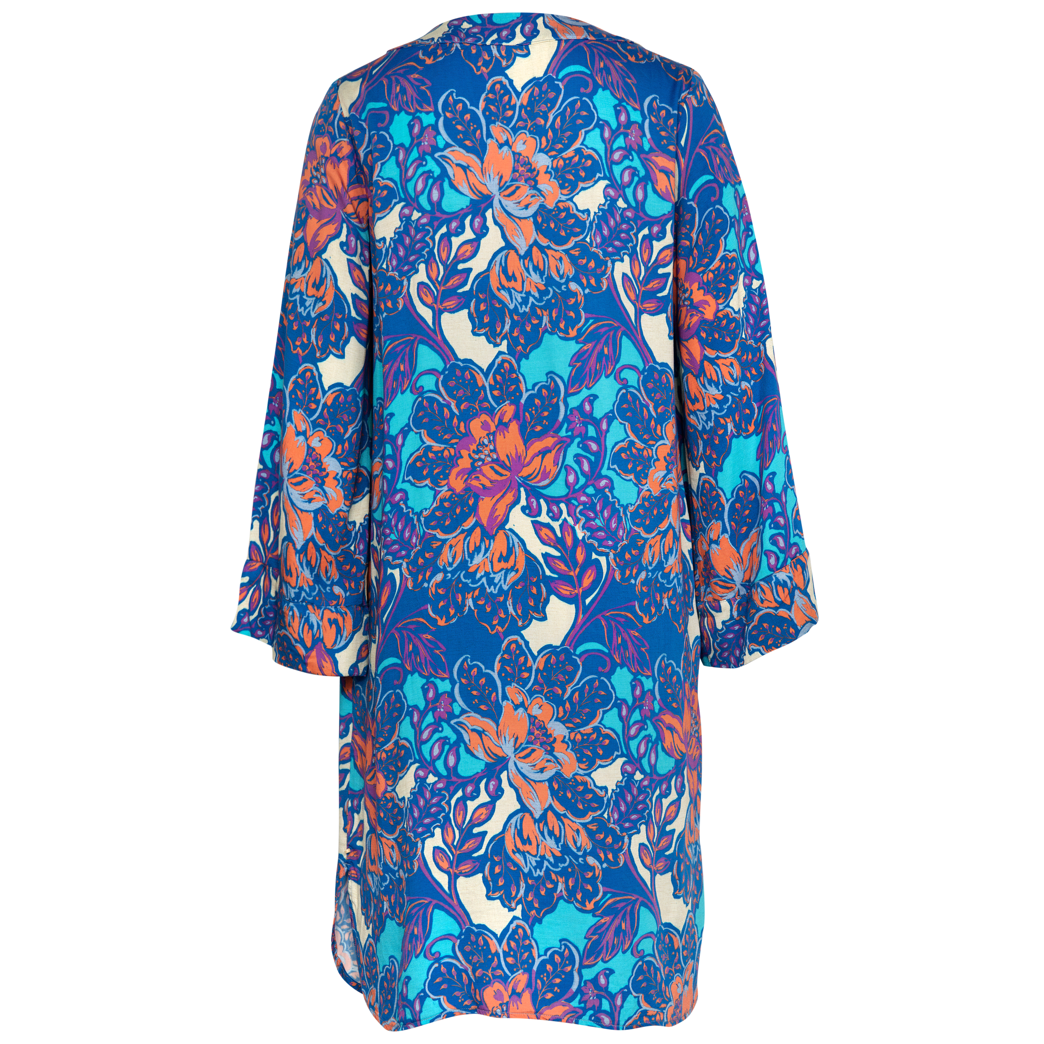 Brighten your wardrobe with this vibrant A-line, relaxed fit Amy midi dress, designed in a playful mix of color and soft greens. The relaxed silhouette drapes beautifully, offering effortless comfort and movement. It features a flattering notch neckline with a partial button placket, along with easy loose long sleeves for a laid-back finish. Side pockets, making it perfect for warm days, casual outings, or holiday styling. A standout piece that combines colour, comfort, and charm.