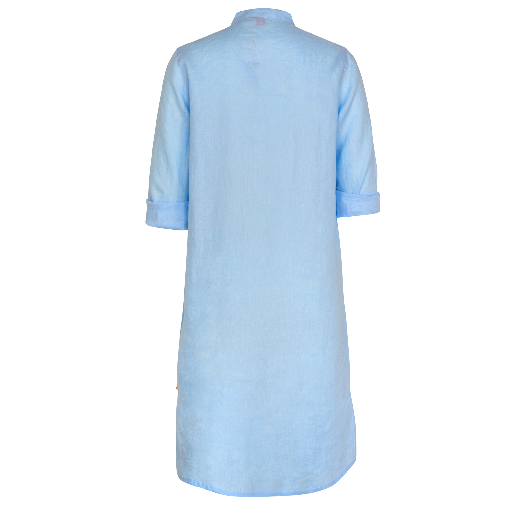 A lovely summer effortless Camille shirt dress wit a loose, relaxed fit that falls around knee or midi length. It features a mandarin collar which stands up around the neck without folding over and a full button down placket and some lovely pockets on the front side.