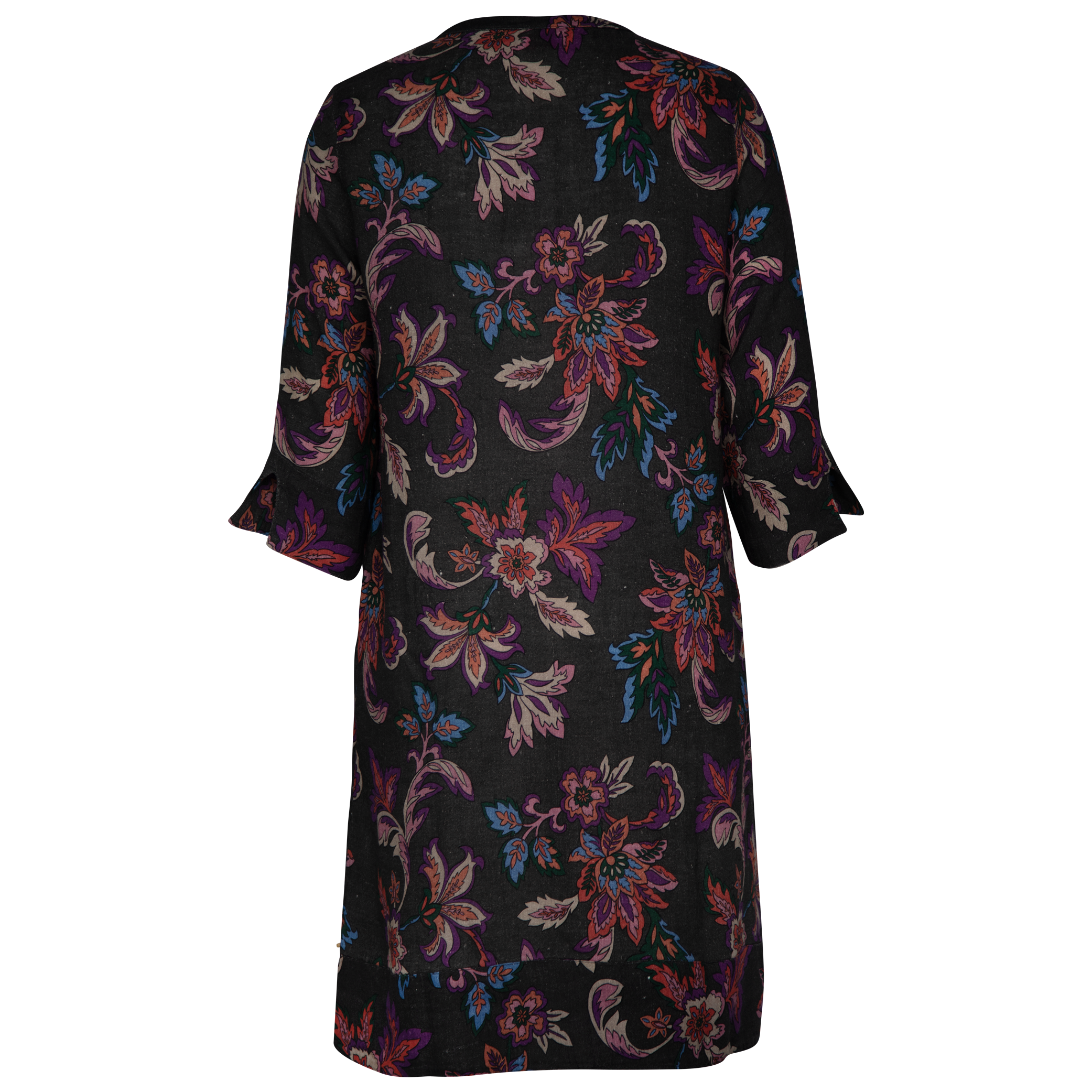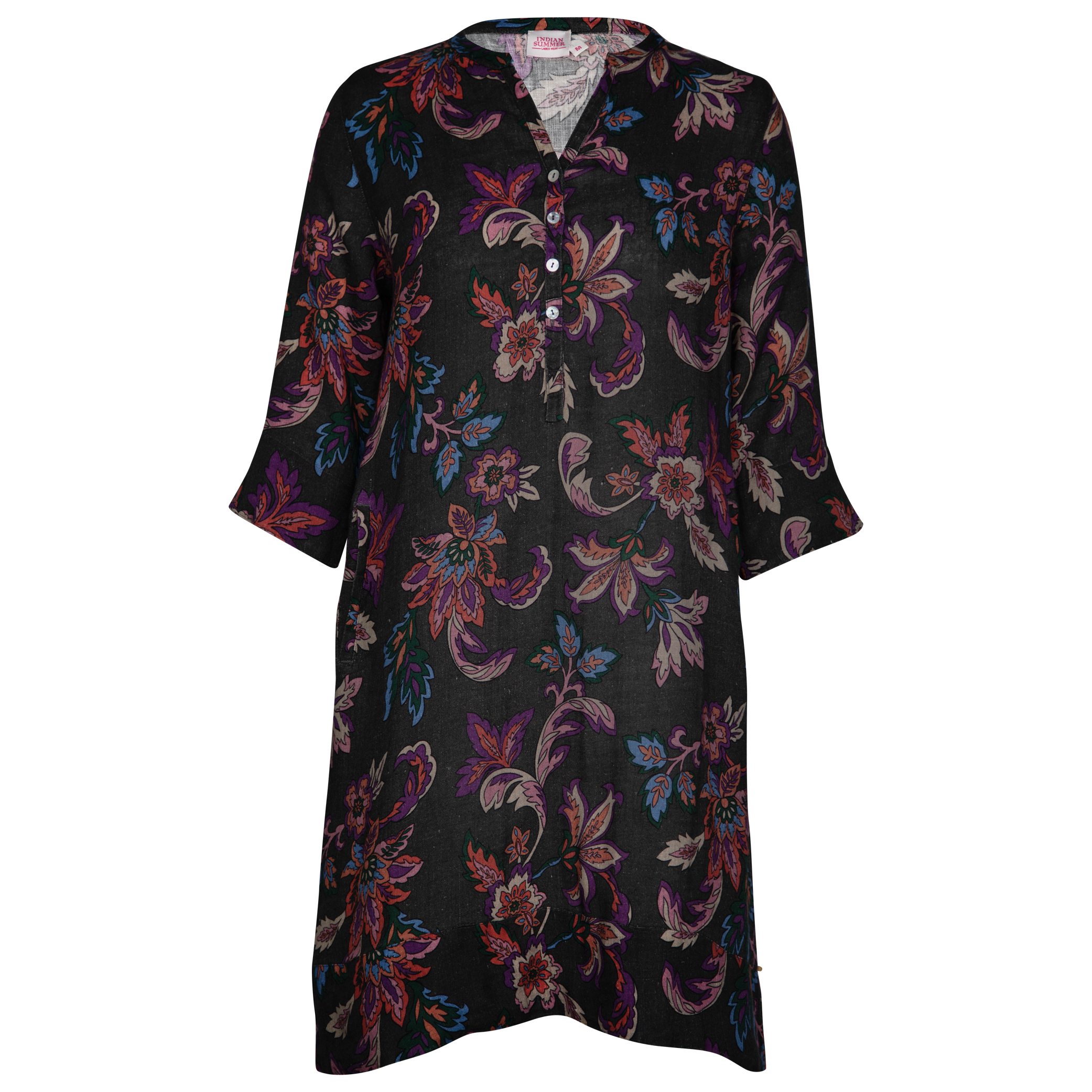 A classic floral Olivia dress is our best selling, flattering shape to wear all summer long. As ever, the fabric is a mid-weight linen with our special soft wash handle. The sleeves have a deep double cuff and the hem has our signature deep double border to weigh the dress whilst wearing. A narrow row of seashell real pearl buttons open from a neat V-neck. There are pockets flatteringly set in from the sides .