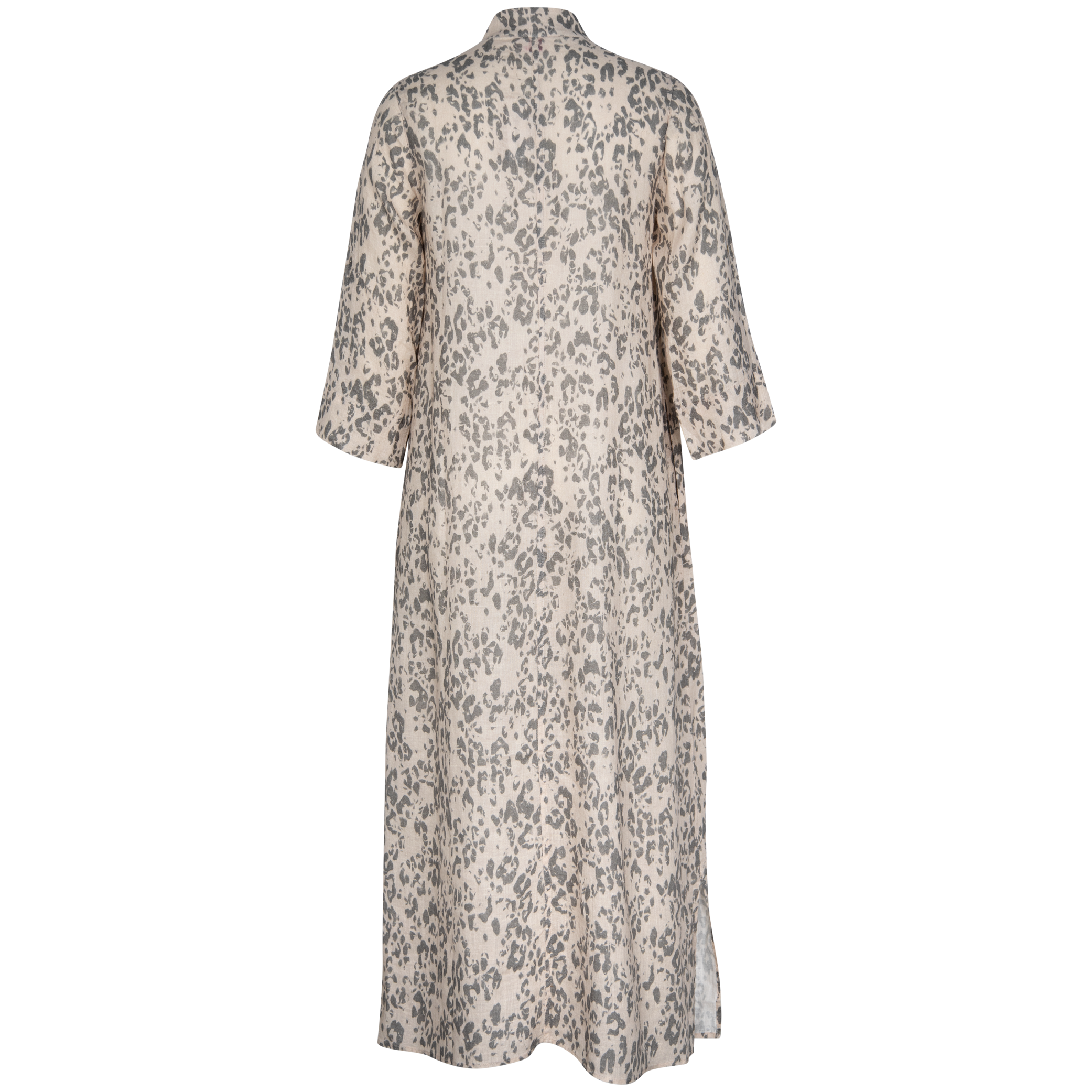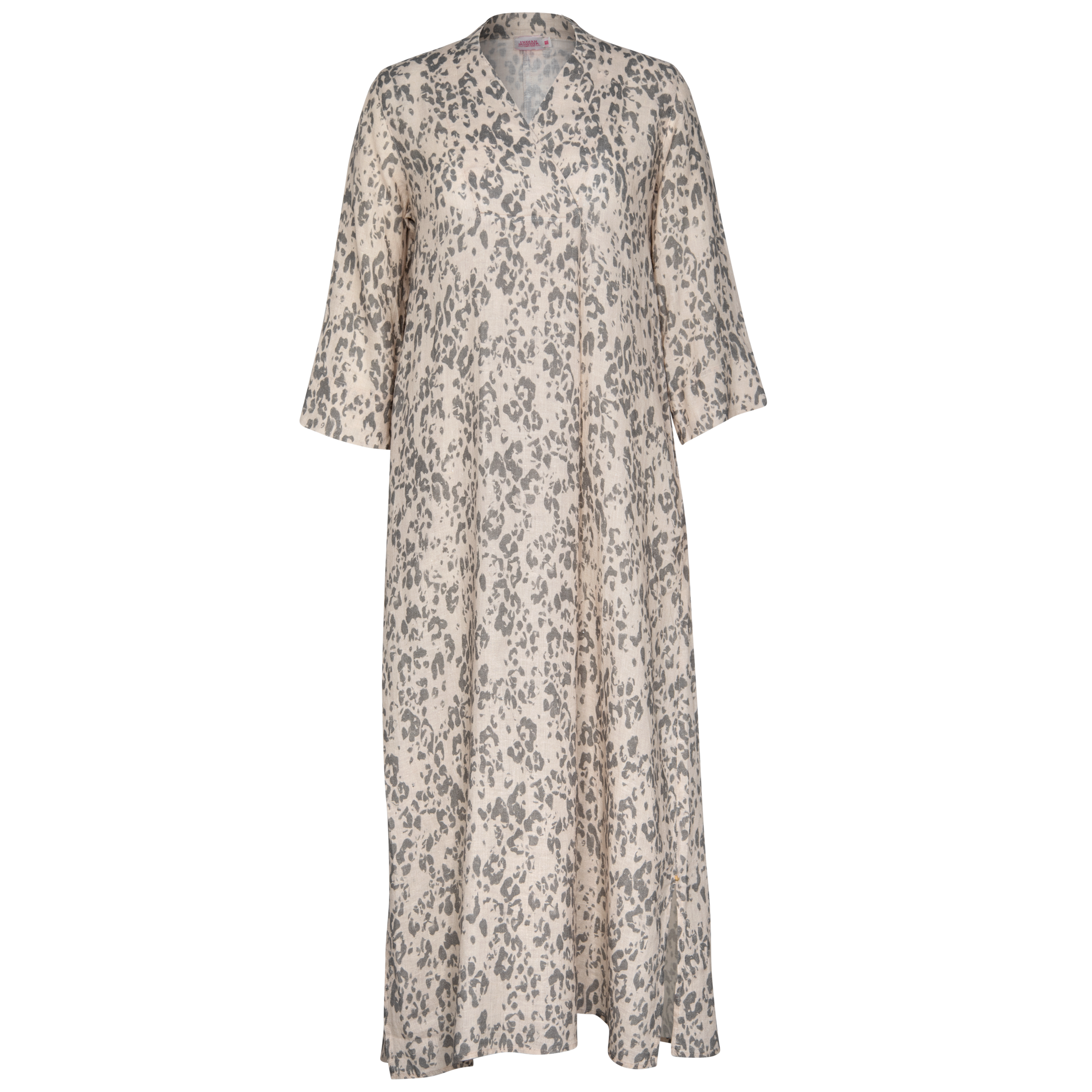 Beautiful 3/4 sleeve linen Stephanie Maxi dress feature a lovely deep V-neck opening.The collar is a simple, low -standing band collar that does not fold over and it forms a V-shape at the front neckline, soft vertical pleat and side pockets.