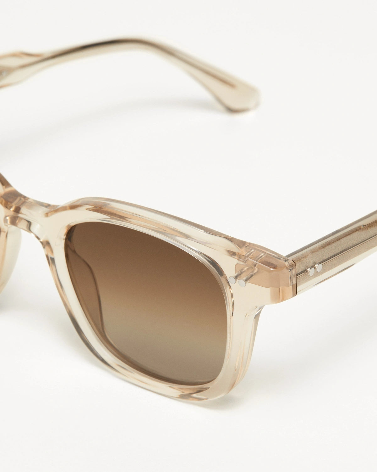 with silver-tone rivet hinges. Distinct bevel cuts frame the UV-protective CR39 lenses.