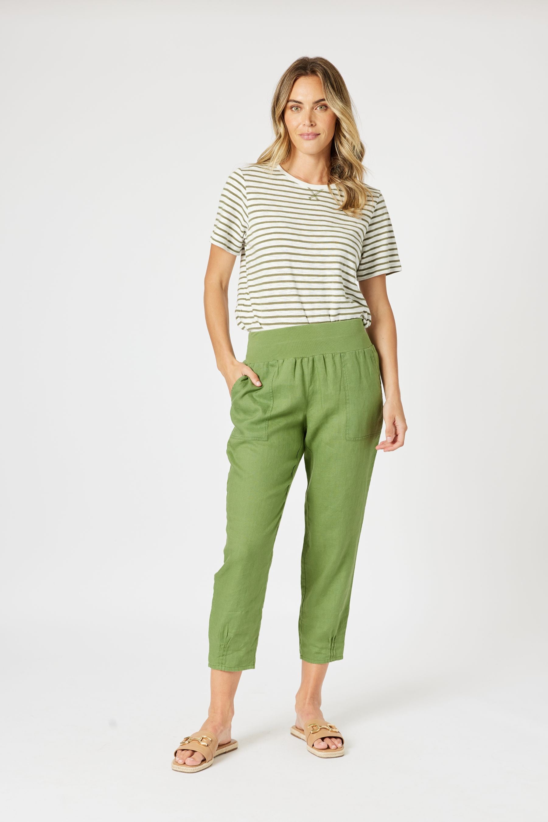 Sarah Rib Basil Waist Linen Pant