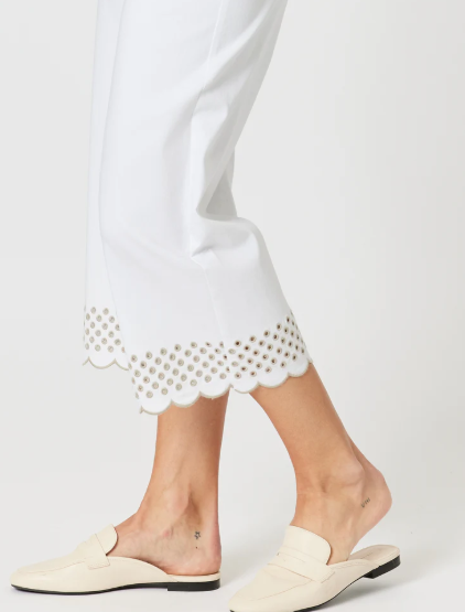 Effortless style meets everyday ease in the Scallop Hem Crop Pant. These pull-on pants feature a smooth flat-front waistband and functional side pockets for a clean, comfortable fit.