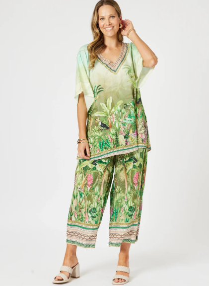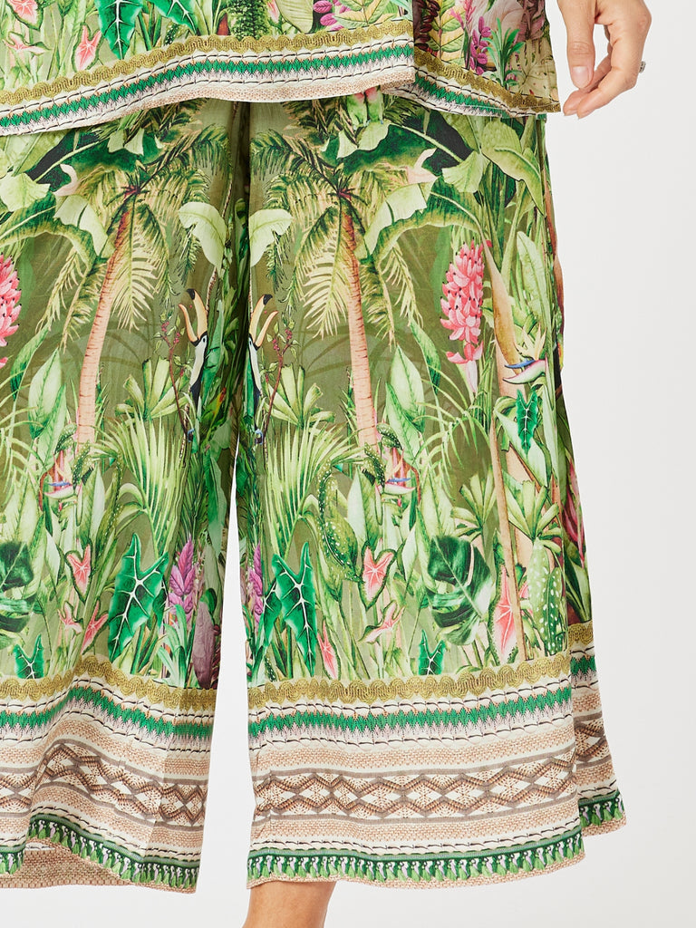 Infuse your wardrobe with vibrant colour and island-inspired charm with the Toucan Print Pant. Adorned with a lush tropical landscape of exotic toucans and botanical motifs, these lightweight pants bring a touch of paradise to everyday dressing.