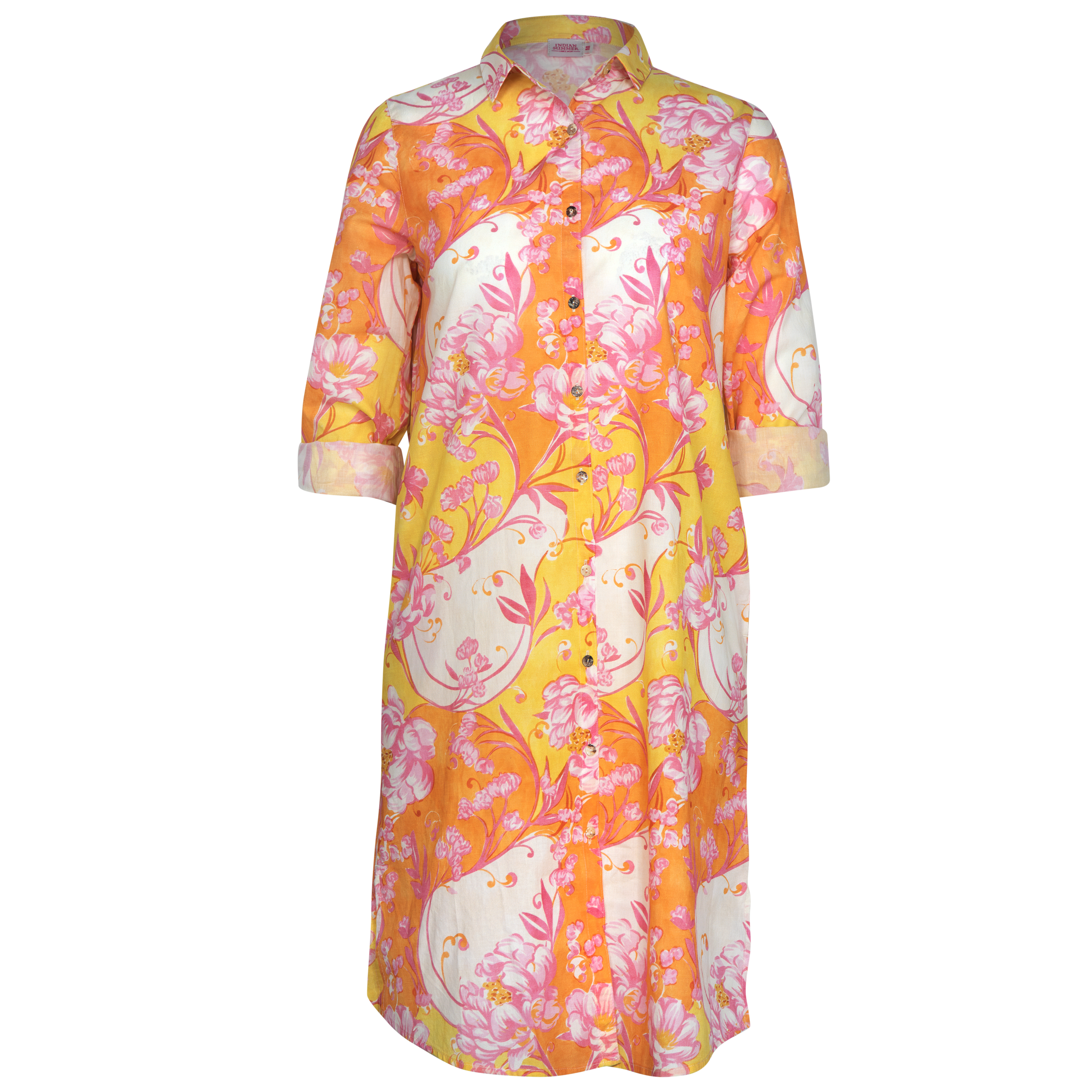 Our beautiful and very light cotton Jilly middy shirt dress features long sleeves and a button -down front, beautiful collar and some side pockets.