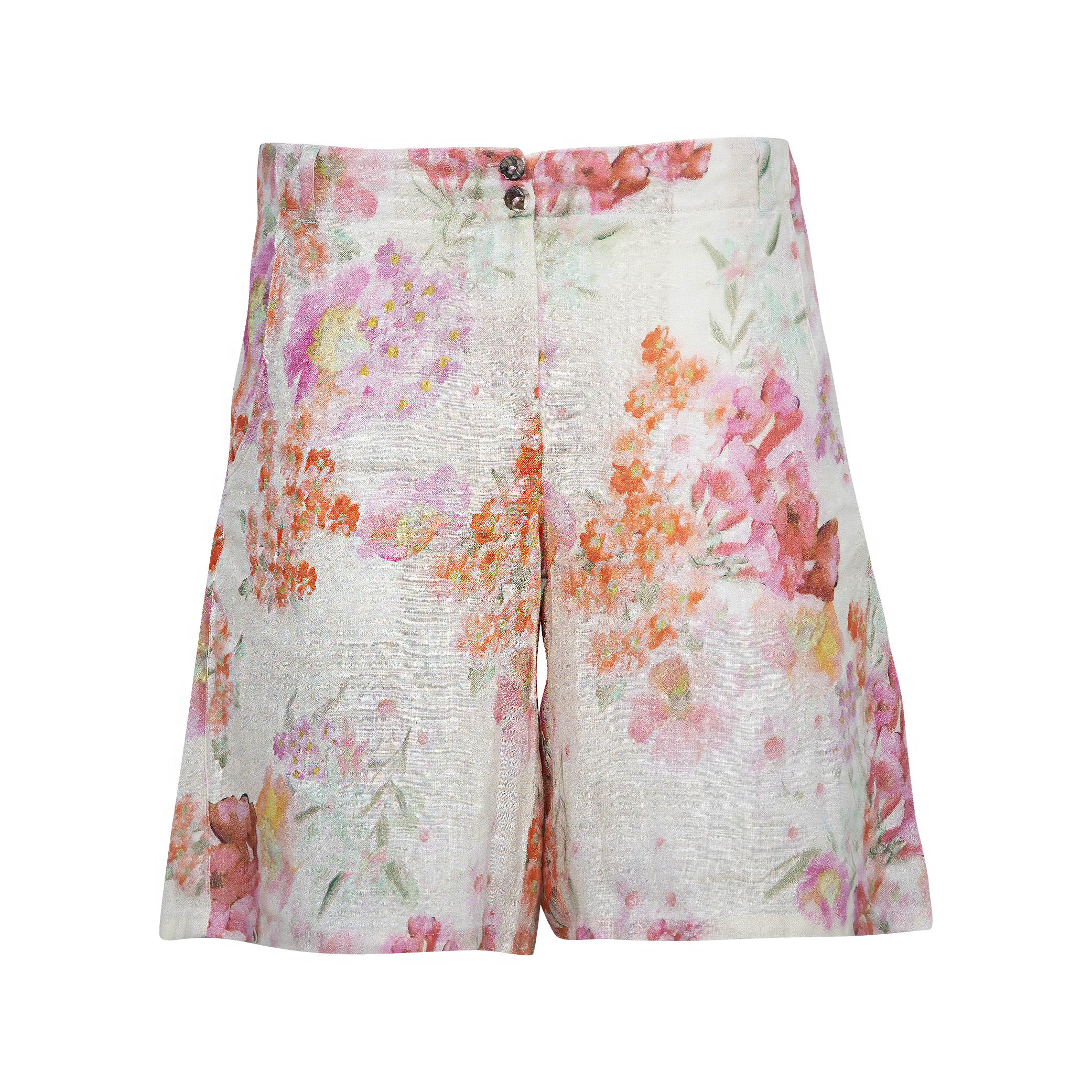 Bring effortless charm to your summer wardrobe with these printed linen shorts. they offer a fresh and feminine look. The lightweight linen fabric provides breathability and comfort, while the subtle A-line cut creates a flattering, easy fit. Finished with a double-button closure and clean, minimal detailing, these shorts pair perfectly with simple tees, tanks, or the matching top for a coordinated set.