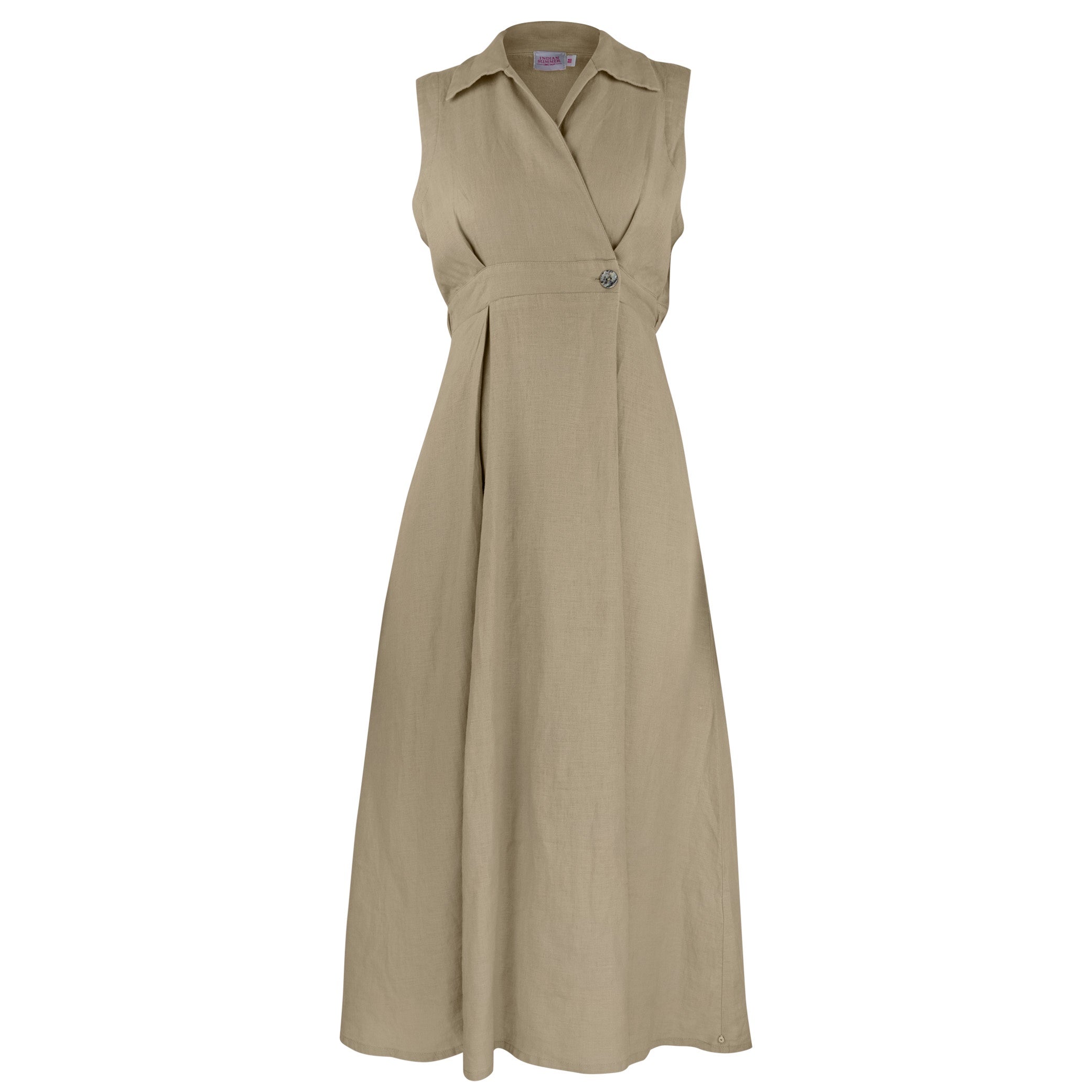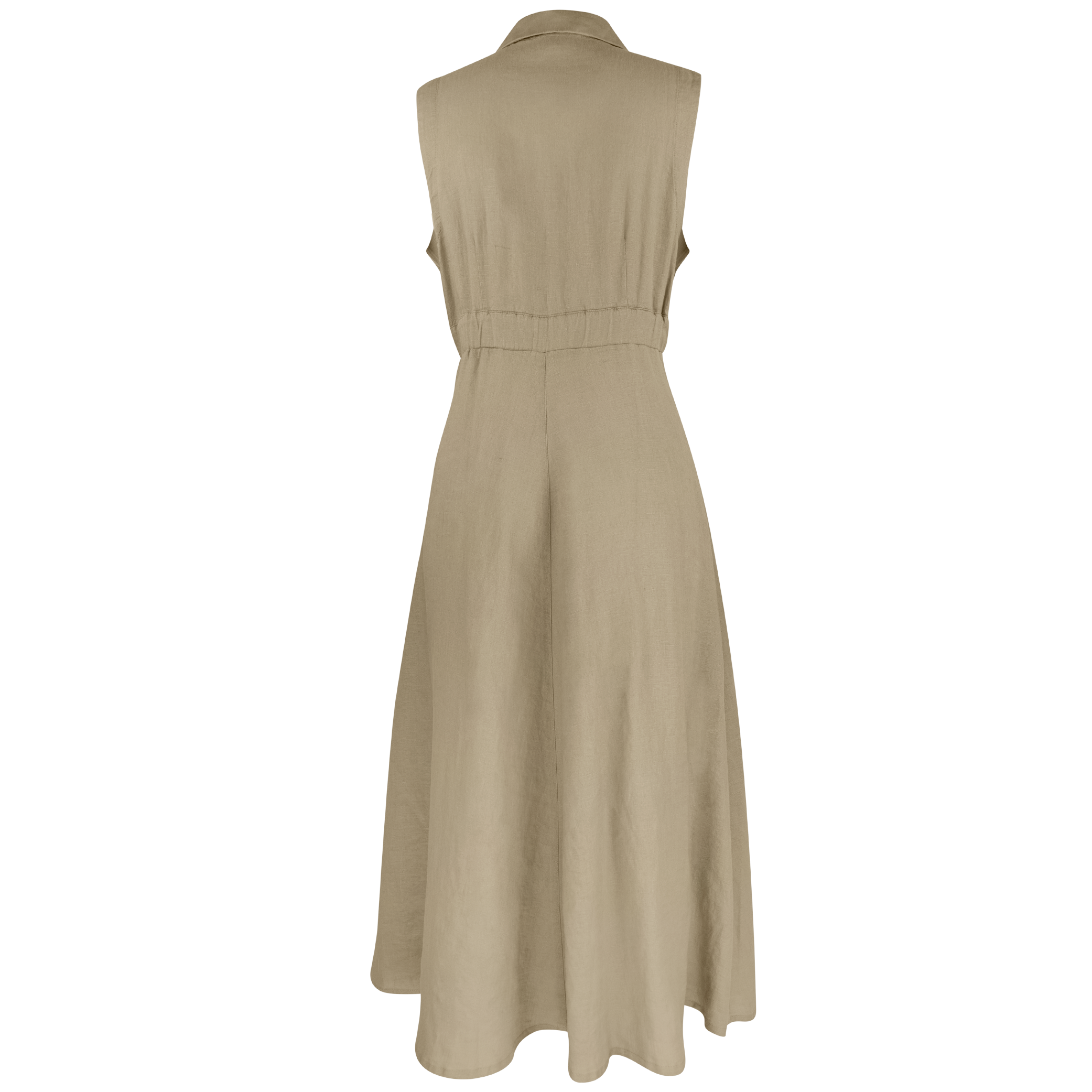 Graceful and effortlessly elegant, this sleeveless linen dress is a wardrobe must-have. The soft, brethable linen flows beautifully into a long, flattering silhoutte, while the subtle pleat and single button detail at the waist add a touch of redefined sophistication. The Penny dress is a versatile piece that moves seammlessly from day to night.