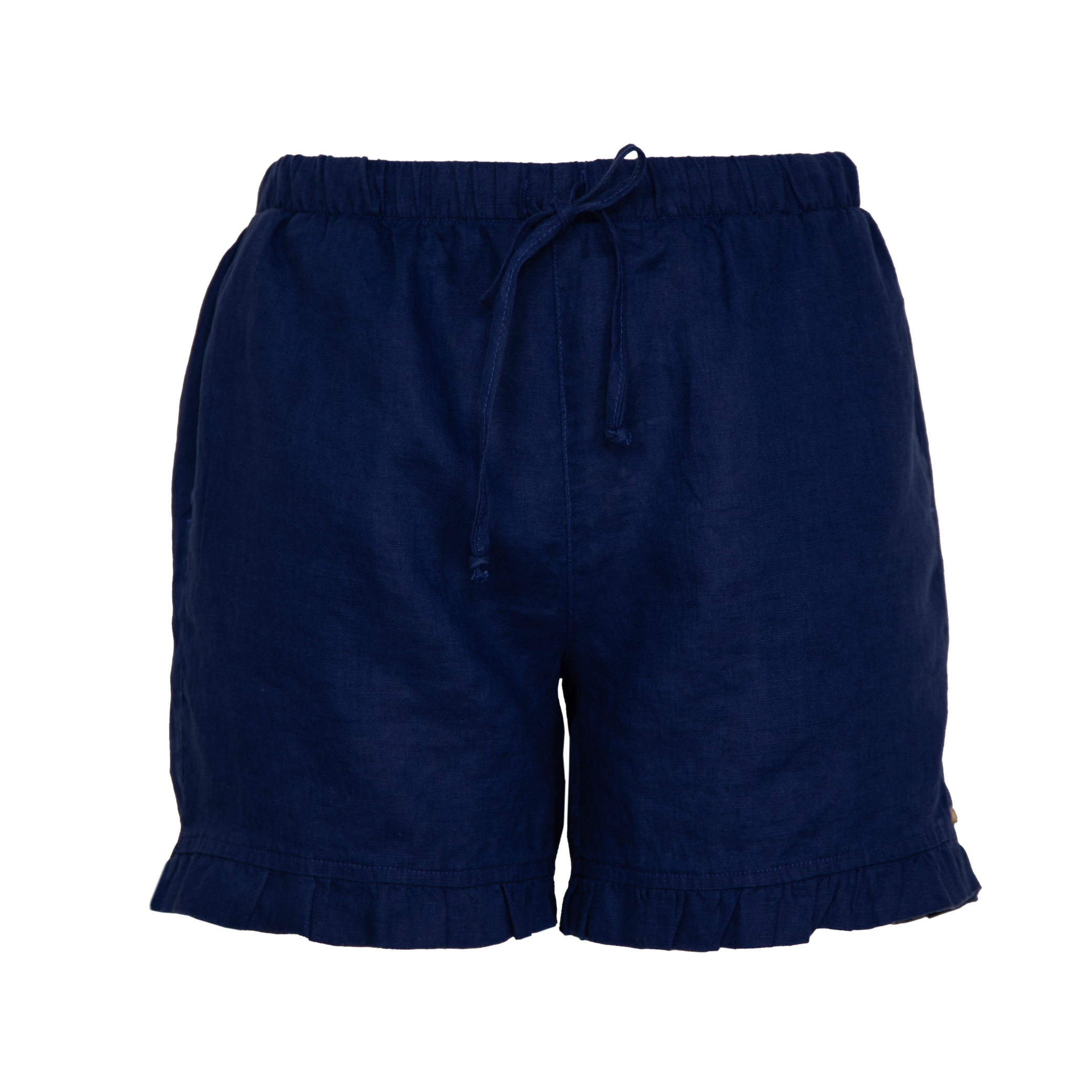 The lightweight Ruffle linen shorts designed for easy effortless comfort, features elasticated waitband with an adjustable drawstring for the perfect fit, while the leg opening features a ruffled edge trim.