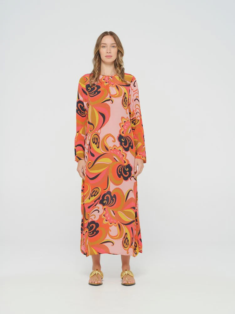 Its floaty silhouette is cut from breathable and arrives in a lightweight maxi-length design. A charming round neckline leading to its button-through placket is complemented by fluted cuffs.