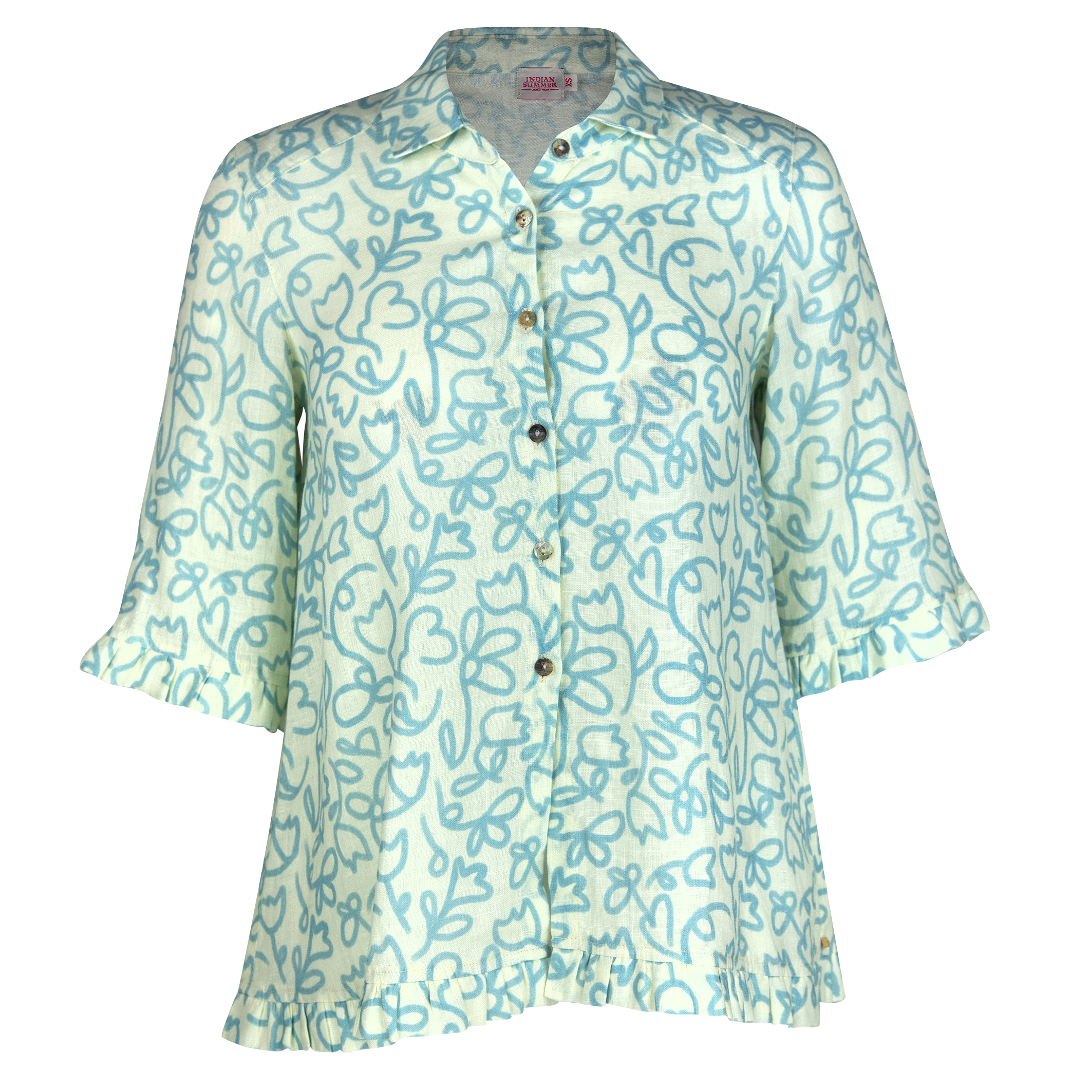 The Rose Ruffle Shirt Boyton 100%Linen Print