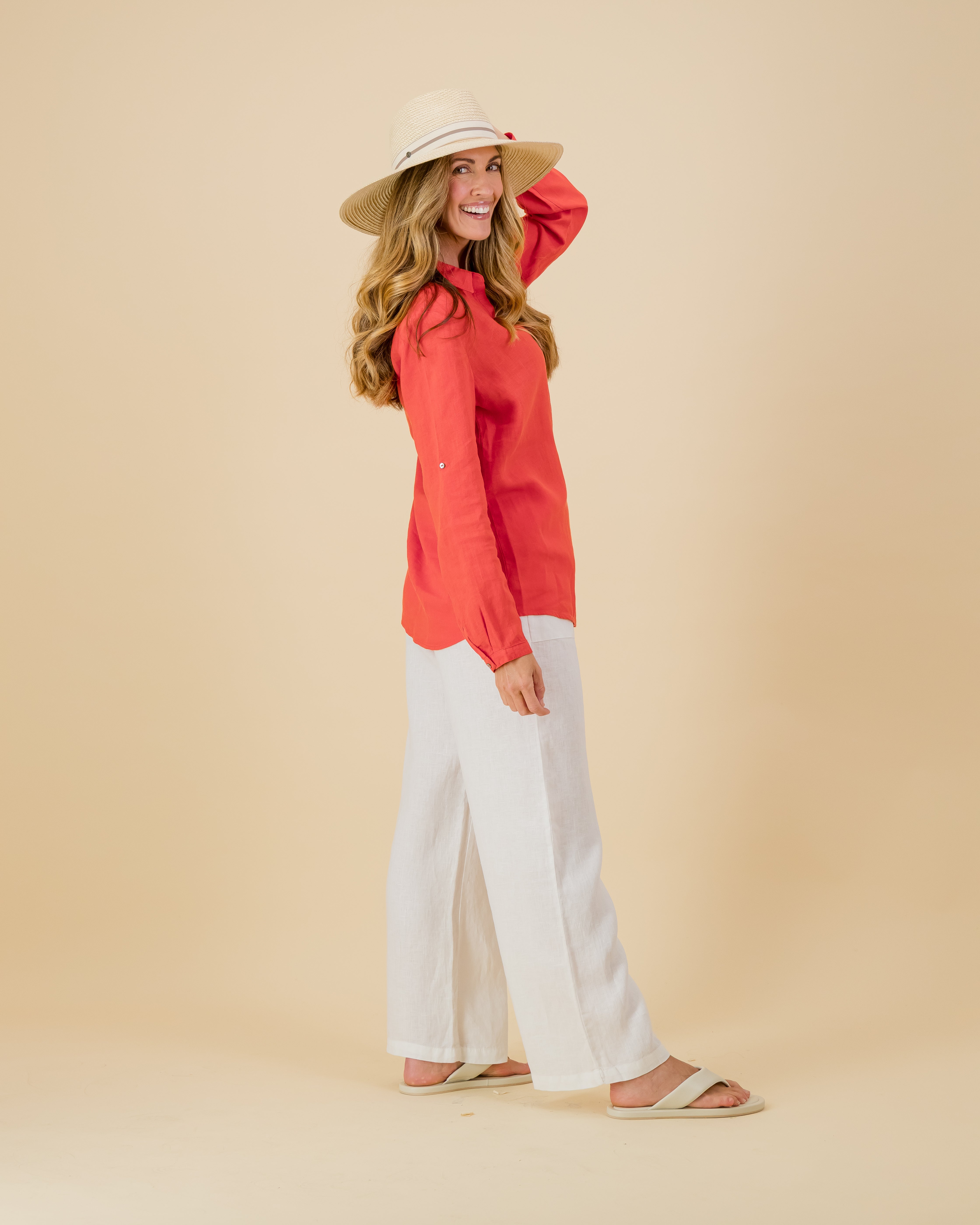 Our best-selling linen v-shirt is a wardrobe must have, loved for its effortless style and timeless charm. It features a flattering V-neckline and easy tab sleeves for that perfect balance of relaxed comfort and polished detail.