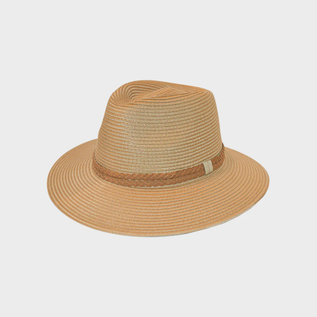 This stylish Gerry Fedora is lightweight and functional. The two layers of vegan suede braid around the crown and stitched ribbon loop add a unique edge to this comfortable women's sun hat. The bright designs are colorfast, so they will not fade.